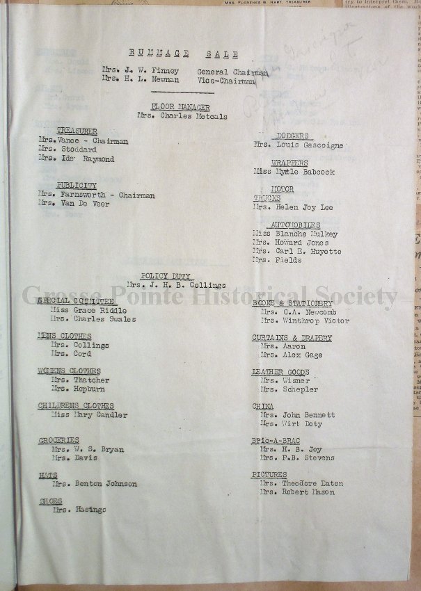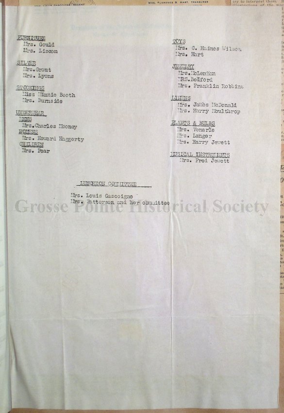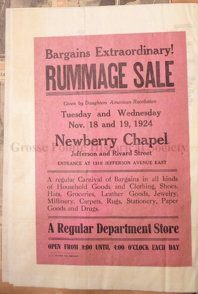 Grosse Pointe Historical Society and its patrons have no rights to use or reproduce items owned by the Louisa St. Clair Chapter DAR without written consent of the Executive Committee of the Chapter. Use and reproduction fees may apply.