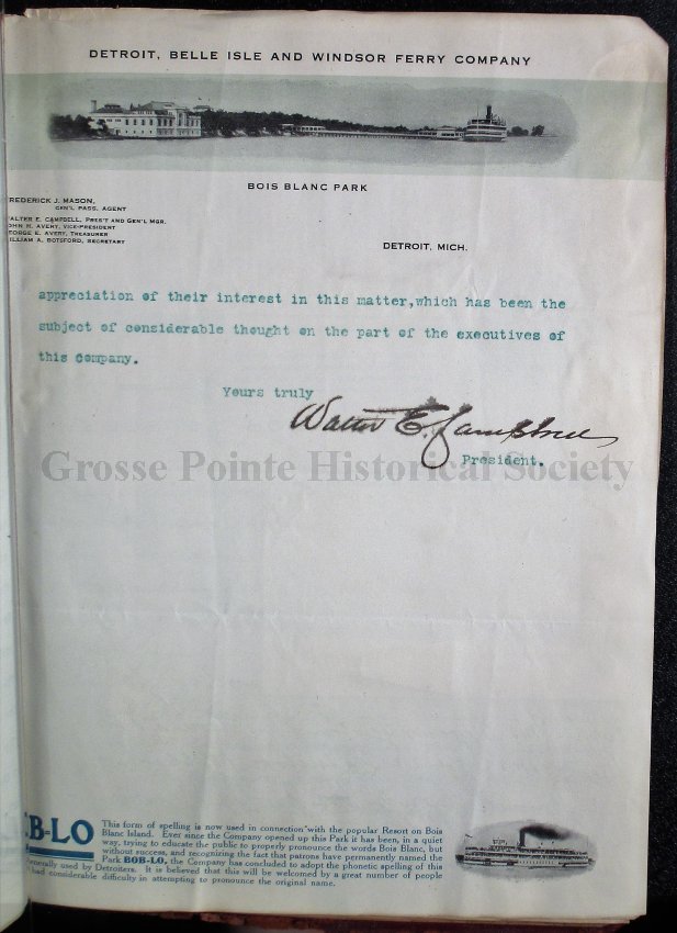 DIGITIZED AND TRANSCRIBED BYEmily O’Brien Whitesides, Public HistorianGrosse Pointe Historical SocietyNovember, 2017