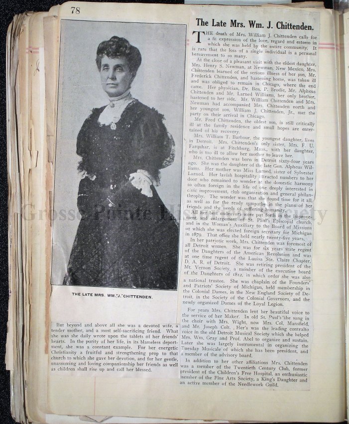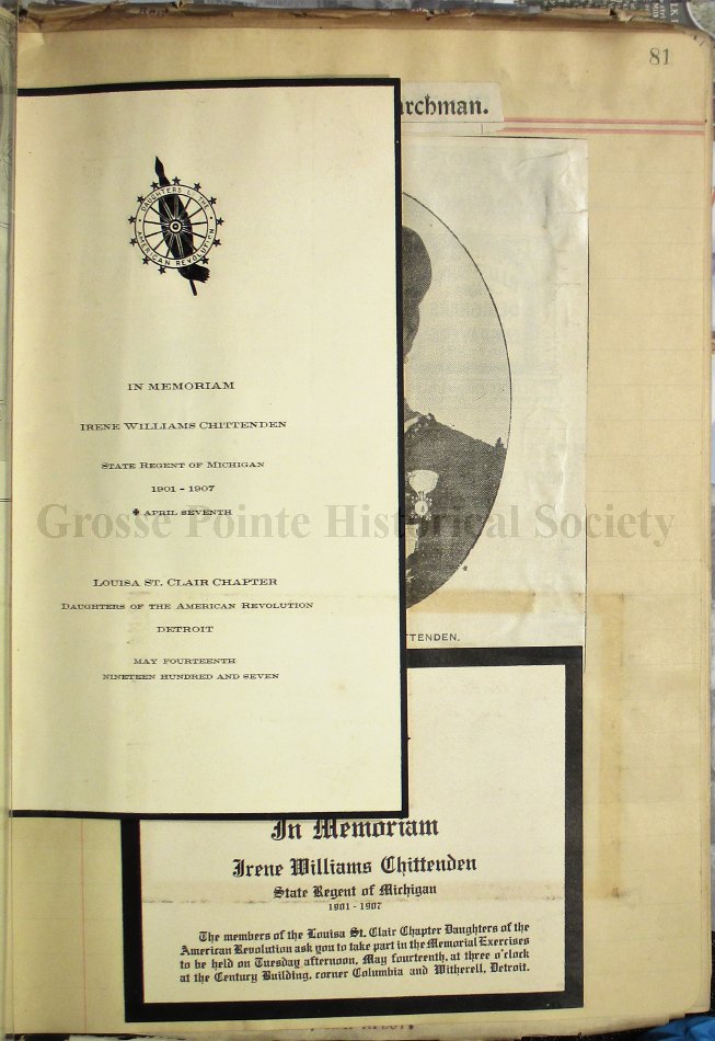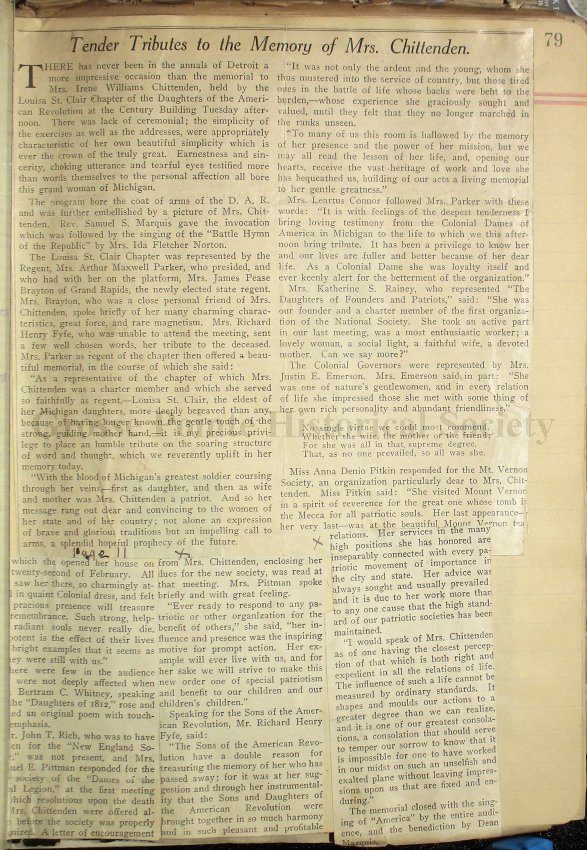 78-81 Lovely tributes to Mrs. William J. Chittenden, who was serving her sixth year as Michigan State Regent of the D.A.R. at the time of her death, April 7, 1907.