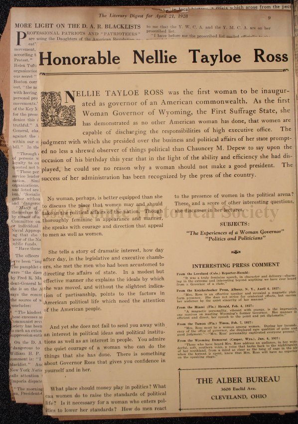 044 Clipping, “Honorable Nellie Tayloe Ross (cont. from previous).