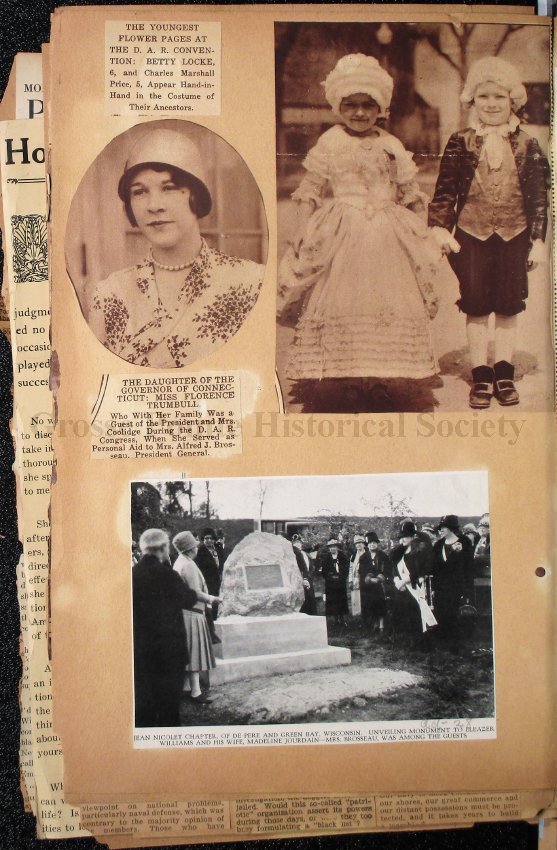 This scrapbook is part of the Louisa St. Clair Chapter, DAR Scrapbook Collection. This collection is owned by the Louisa St. Clair Chapter, DAR, and is housed at their climate-controlled storage unit in Grosse Pointe, MI.