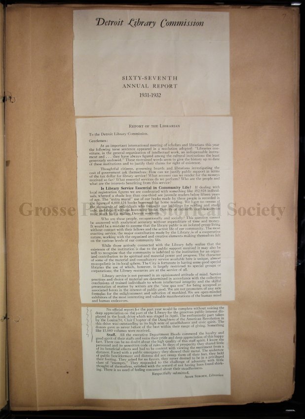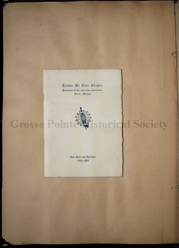 Grosse Pointe Historical Society and its patrons have no rights to use or reproduce items owned by the Louisa St. Clair Chapter DAR without written consent of the Executive Committee of the Chapter. Use and reproduction fees may apply.