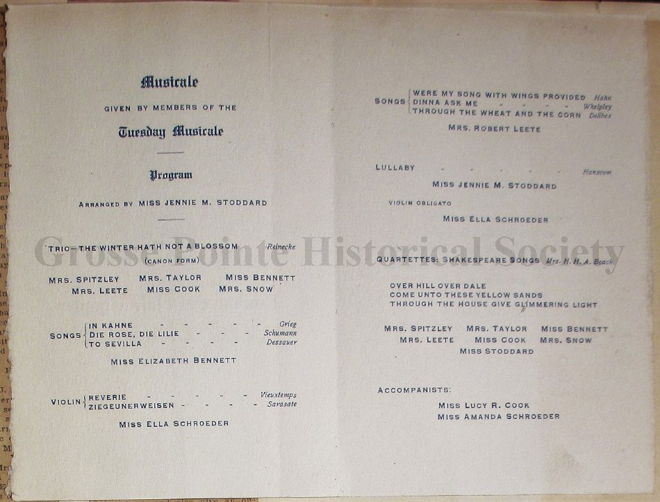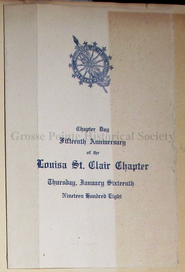 Grosse Pointe Historical Society and its patrons have no rights to use or reproduce items owned by the Louisa St. Clair Chapter DAR without written consent of the Executive Committee of the Chapter. Use and reproduction fees may apply.