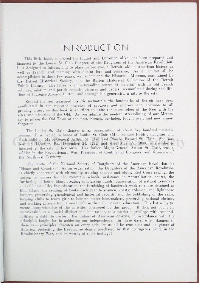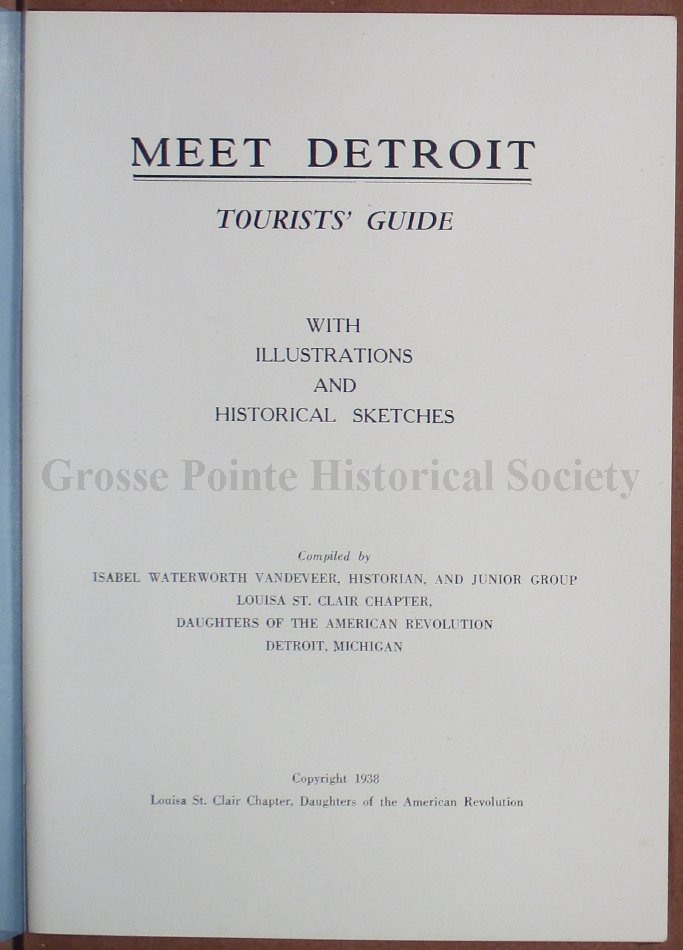 Compiled by Isabel Waterworth Vandeveer, Historian, and Junior Group Louisa St. Clair Chapter, Daughters of the American Revolution, Detroit, Michigan.