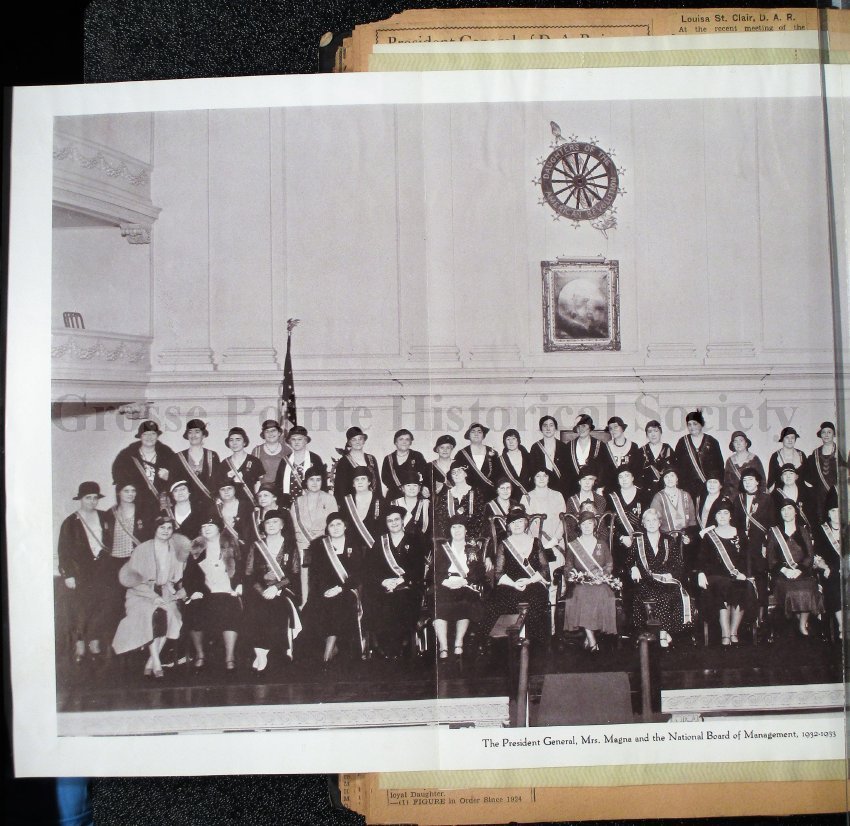 Grosse Pointe Historical Society and its patrons have no rights to use or reproduce items owned by the Louisa St. Clair Chapter DAR without written consent of the Executive Committee of the Chapter. Use and reproduction fees may apply.