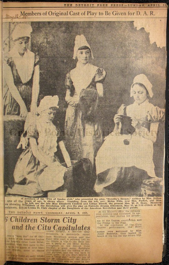 028 Clippings re: Michigan State DAR Conference, with photos of Mrs. Hobart, Mrs. Emma Fox, and Mrs. Archibald Goddard.